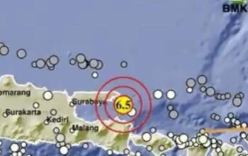 Gempa mangnitudo (M) 6,5 mengguncang wilayah Sumenep, Madura. Sejumlah gempa susulan terjadi di Sumenep.